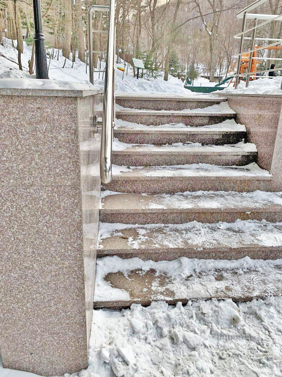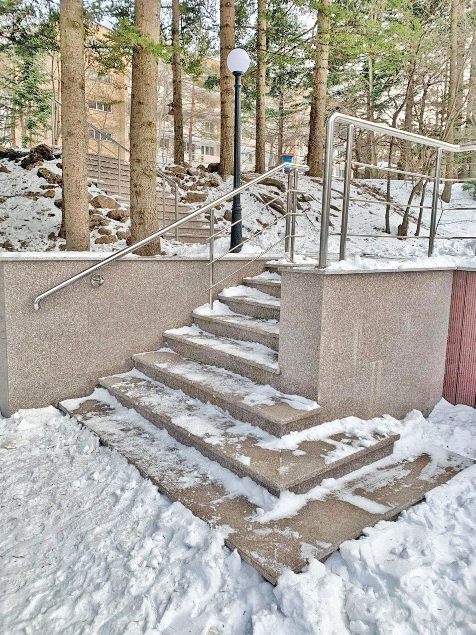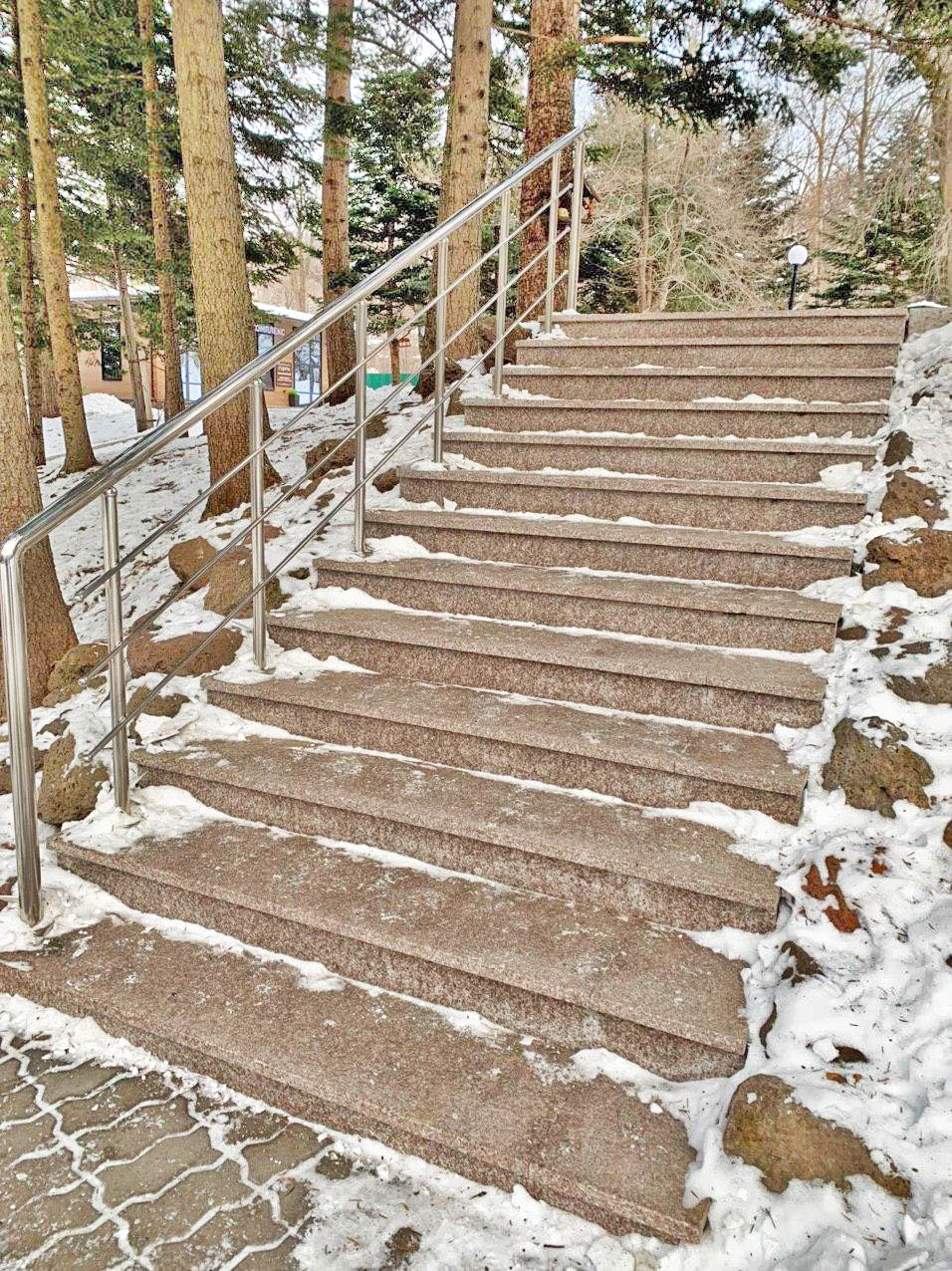 Термообработанная гранитная ступень G664 Бейн Брук Браун размером 1500*350*30 мм.