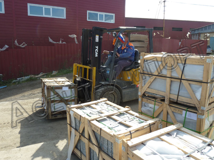 Начало октября не стало исключением. 3 числа осуществлена погрузка полированной плитки марок G664 и G687 размером 600х600х15мм, в общем объеме 530,64 м2. в контейнер для отправки в Иркутск.
